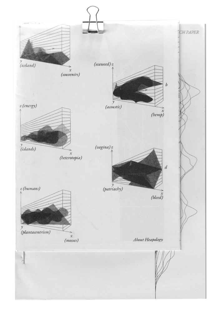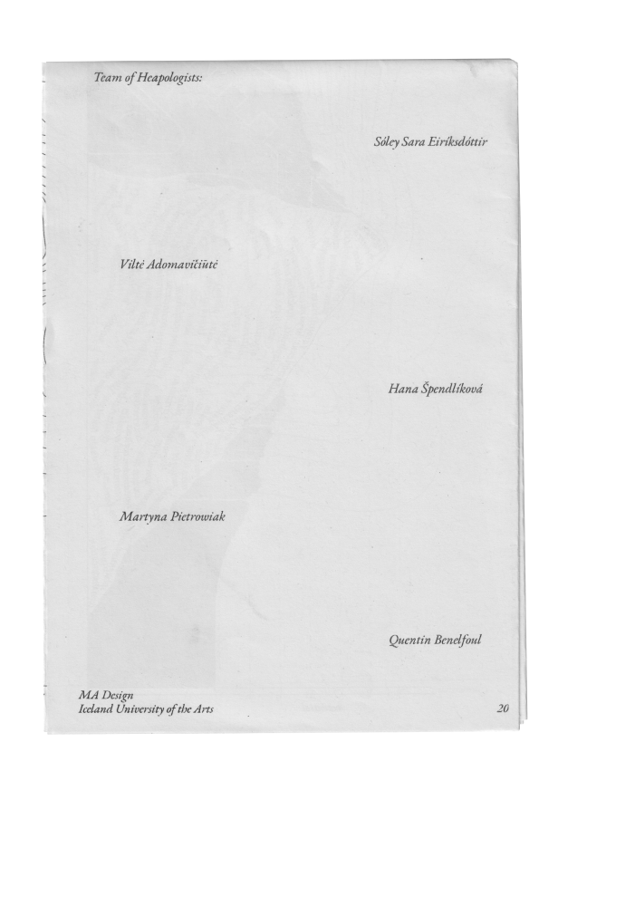 The initial concept of "Heaping" was taken from a short essay by Timothy Morton about the effects of individual actions and the mass extinction as their result. Together with the students we examined the nature of heaps and how we could translate it into a publication that represents their various research in a non-linear way: heap-like.